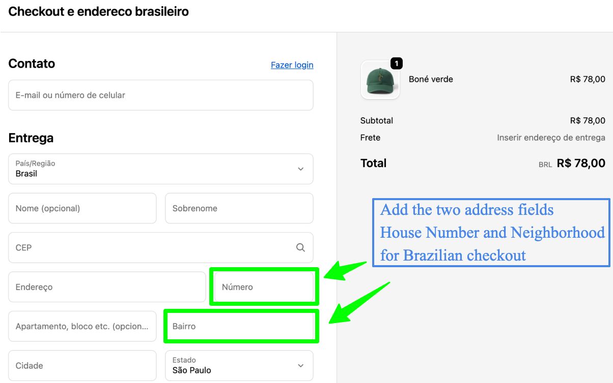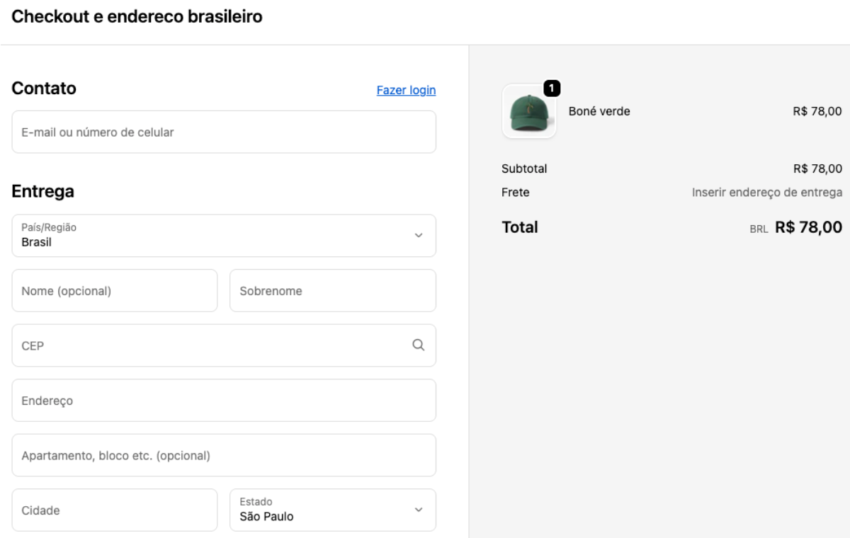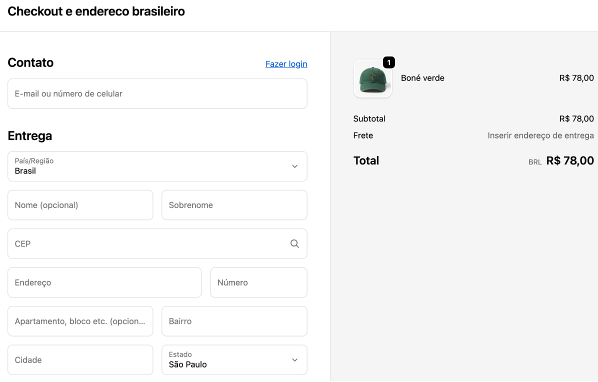 Com os campos adicionais ativados, o checkout brasileiro vai incluir: